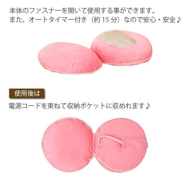 使わないときは電源コードを内部に収納できるので、インテリアとしてもかわいいクッション型マッサージ器です。