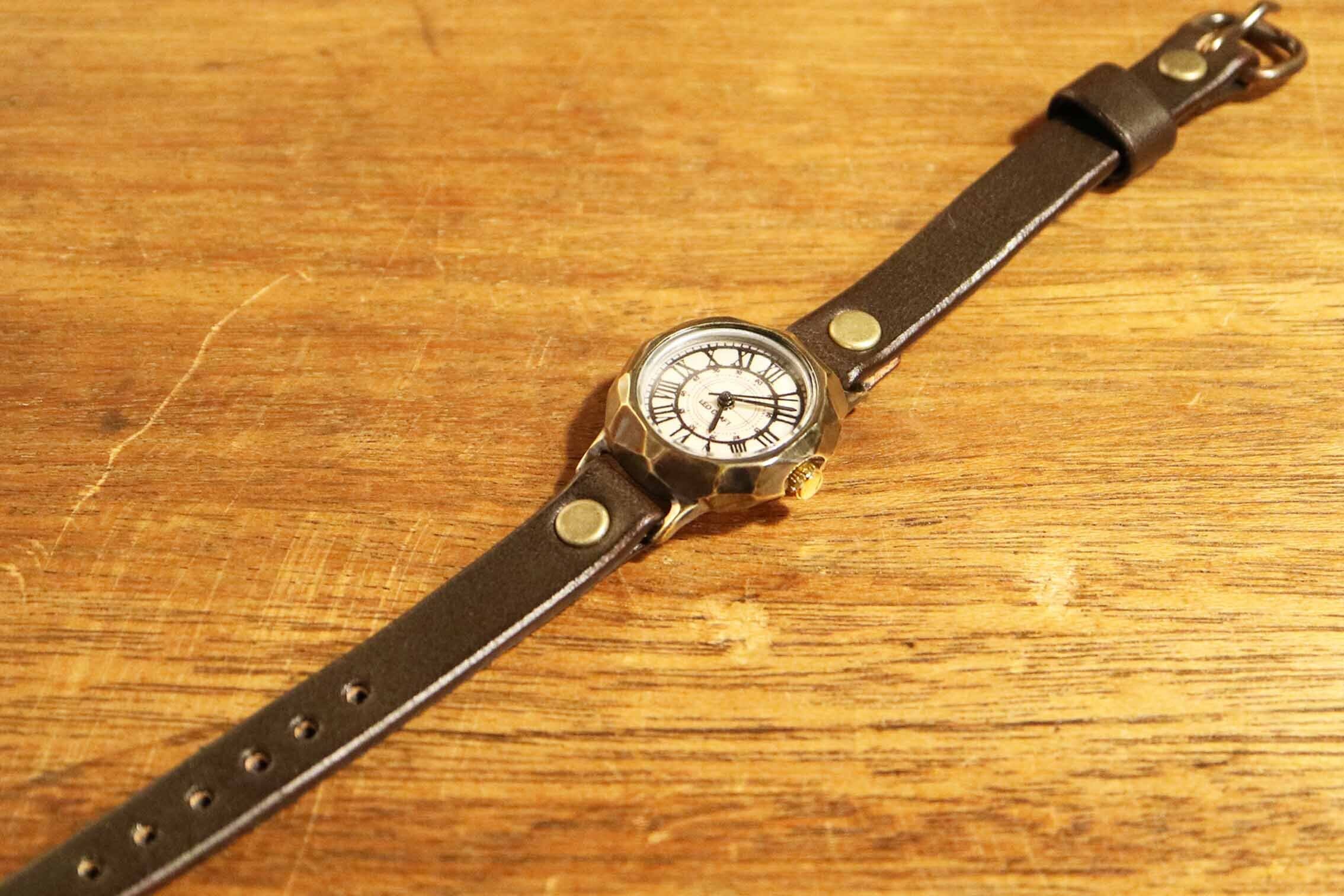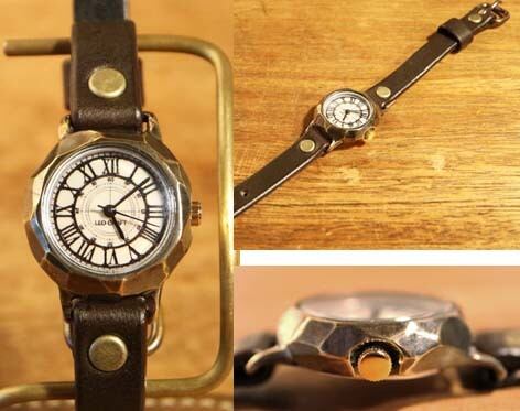 *真鍮やレザーなどの素材を用い、本体ケース、文字盤、ベルト等を彫金、